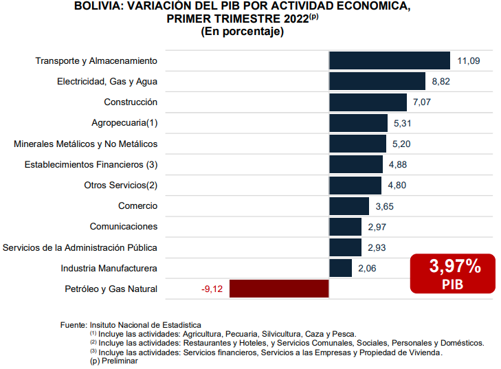 Bolivia crece al 3,97% al primer trimestre de 2022, según el ministerio de Economía. ¿Esto quiere decir que la economía -y más aún los ingresos de los que el gobierno presume que puede gastar- está preparada para prescindir del sector hidrocarburífero que sufre brutal recesión? https://t.co/M18fgFwEe6