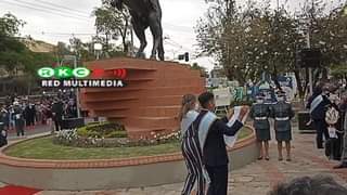En la ofrenda floral por los 212 años de aniversario el Concejal del MAS Joel Flores con un lienzo en mano el alcalde de Cercado sin obras para la ciudad.