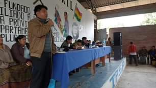 Luís Arce Clemente alcalde del municipio de Shinahota, brinda informe del trabajo que realiza y problemas que se atraviesa en el ampliado ordinario de la Central 4 de abril