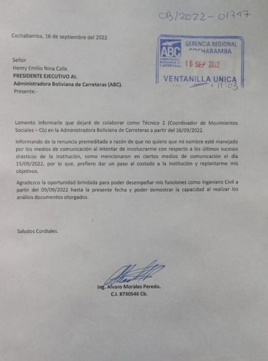 Álvaro Morales Peredo, renuncia a su cargo en la ABC.Categorías NoticiasEtiquetas , Facebook, Kawsachun Coca 16/09/2022 #RKC /// Alvaro Morales Peredo, renuncia a su trabajo en la ABC. => Recibir por Whatsapp las noticias destacadas Fuente: Kawsachun Coca