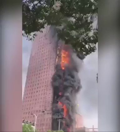 Un rascacielos de 218 metros de altura, ubicado en la ciudad china de Changsha, se incendió este viernes sin que se hayan registrado víctimas. Se trata del edificio de la empresa estatal de telecomunicaciones China Telecom. Video: Redes Sociales https://t.co/1J1YMzY9ba