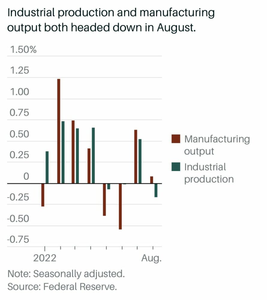 #EEUU | La producción industrial y manufacturera bajaron en agosto. https://t.co/49uwzKr6si