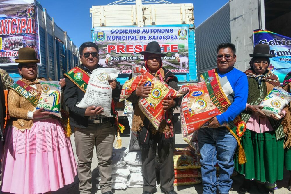 La entrega de esta ayuda asciende a Bs 448.055. Los cinco municipios beneficiados son: Catacora, Luribay, Puerto Acosta, Santiago de Machaca y Malla.