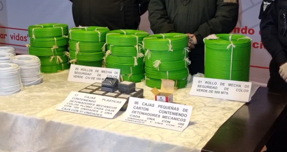 Detalló que se colectaron 854 dinamitas hidrogel, 3,353 unidades de masa de dinamita con característica a dinamita, 5.200 metros de cordón de seguridad conocido como mecha lenta y 6.244 de detonadores mecánicos.