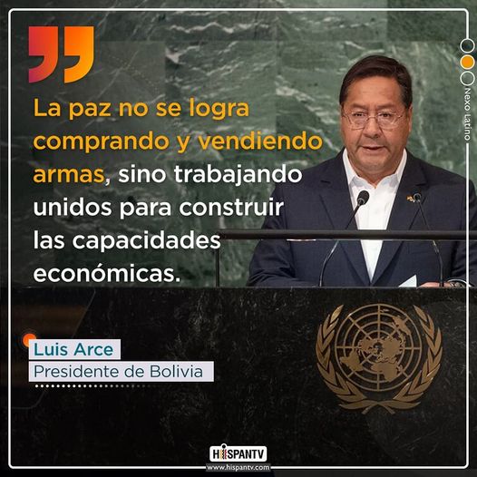 El presidente de Bolivia, Lucho Arce, en su discurso en el 77.° período de sesiones de la Asamblea General de la Organización de las Naciones Unidas (AGNU), lamentó que en los últimos meses se han destinado al conflicto de Europa del Este 20 veces más recursos económicos que los que se destinaron al Fondo Verde para el Clima en 10 años.