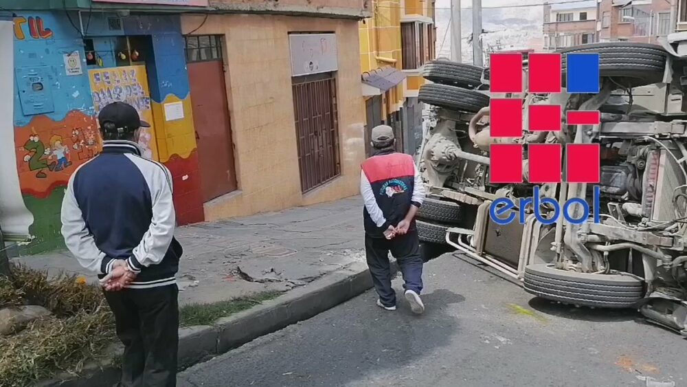 #LaPaz | Un camión mezclador de hormigón sufrió un vuelco de costado tras presentar fallas en la subida de la avenida Esteban Arce de la zona Villa San Antonio https://t.co/deK7IQza4u