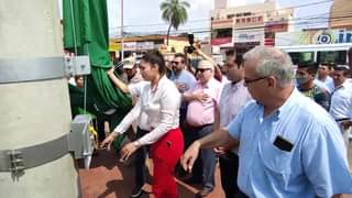Alcaldesa interina Gabriela Garzón izó la bandera cruceña gigante en la avenida Grigotá.