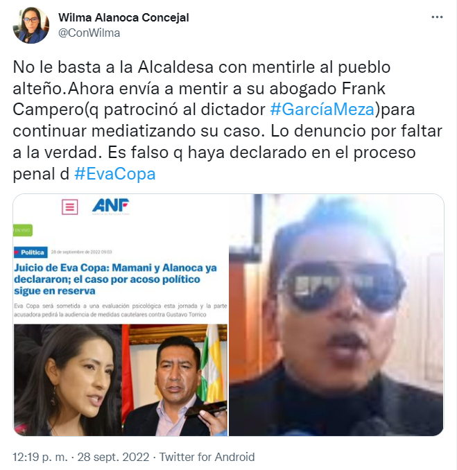 | La concejala del MAS en #ElAlto Wilma Alanoca niega haber declarado en l…