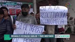 El representante de los Comerciantes de la Feria Itinerante, Julio César Alaca, expresa que como gremio rechazan el cabildo convocado para este viernes, señalando que la propuesta de un paro indefinido afectaría a todo el departamento. 📹 BTV