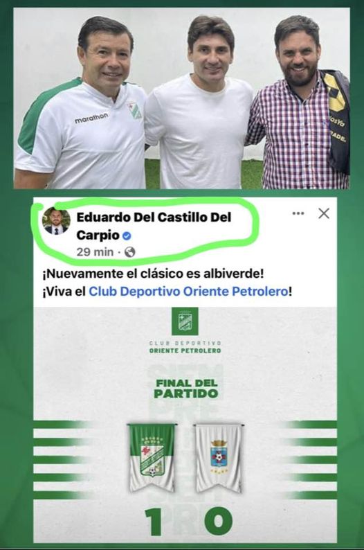 Alegría orientista, la del Ministro de Gobierno, feliz por el triunfo de su equipo.Categorías NoticiasEtiquetas , Facebook, Pepe Pomacusi Periodista 02/10/2022 Eduardo del Castillo festeja en las redes sociales #clasico#Oriente#futbol Fuente: Pepe Pomacusi Periodista => Recibir por Whatsapp las noticias destacadas