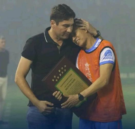 La imagen linda, diferente: el presidente de Oriente distingue a Joselito Vaca, jugador de Blooming.