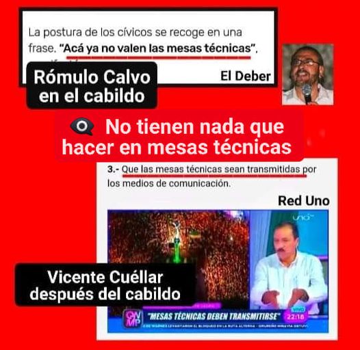 Tras la imponente poblada ante El Cristo donde el mismo comité cívico (foto) aseguró que ya no iban más las benditas mesas técnicas del gobierno, el rector «metió la pata» al poner ciertas condiciones para asistir a esas mesas técnicas (foto) – lo dijo un par de horas después del Cabildo – ¿ Quién los entiende ? 🤔