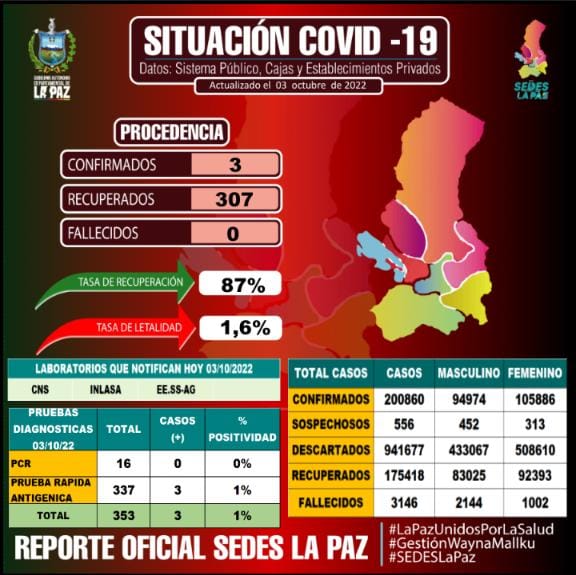 🔵 #ANF | #Salud Este lunes, el Sedes de La Paz registró tres nuevos contagios de #coronavirus. https://t.co/byZfUxsIP3