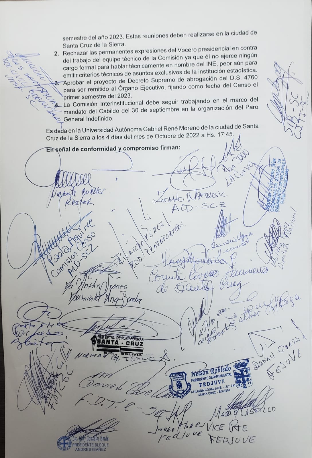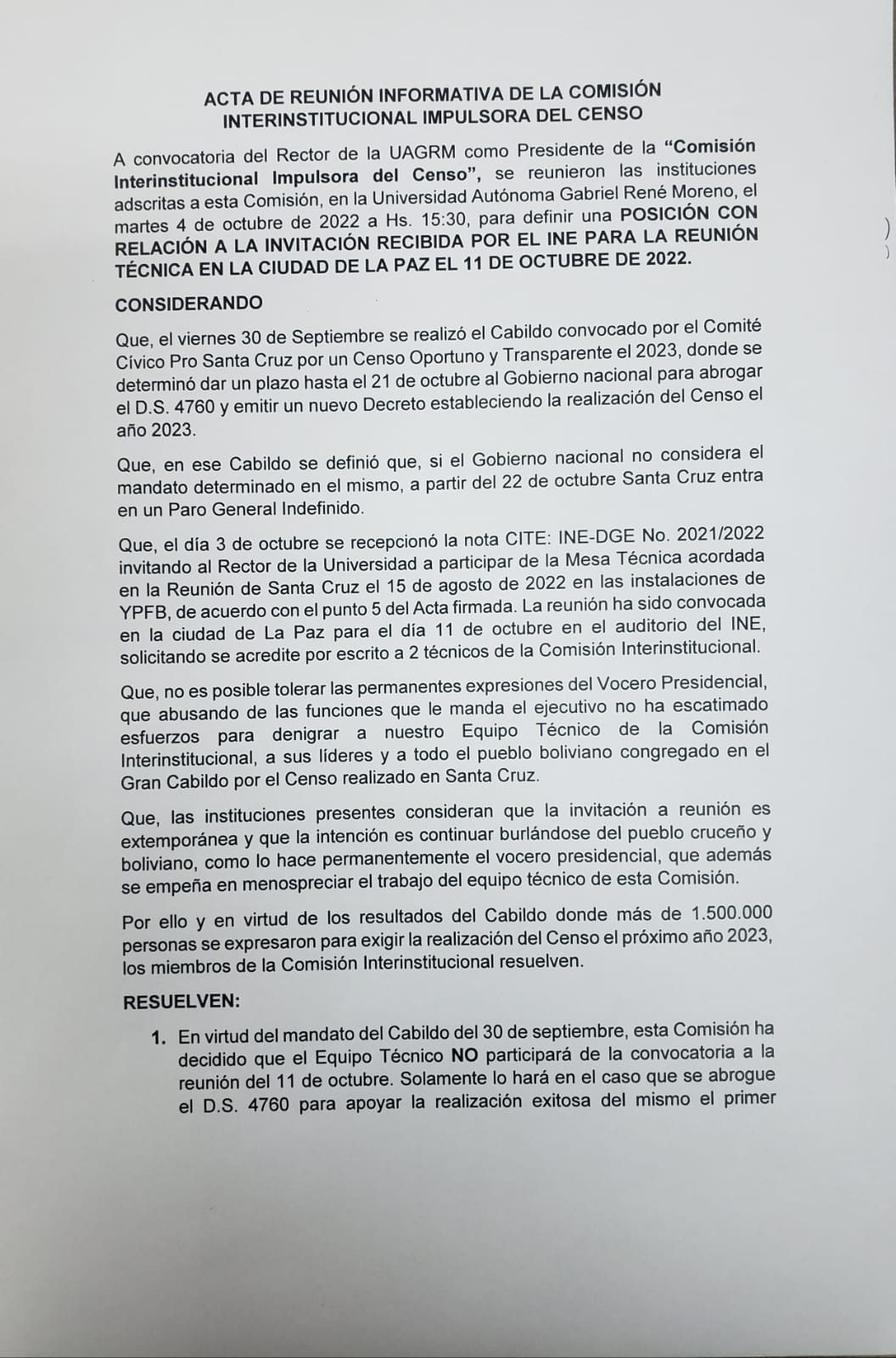 Confirmado, el comité interinstitucional de Santa Cruz no asistirá al diálogo del día 11 de octubre con el gobierno.