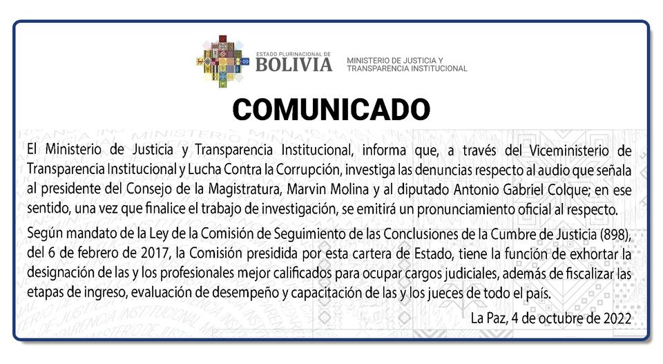 Ministerio de Justicia informa que se inició investigación sobre la denuncia contra el presidente del Consejo de la Magistratura por el supuesto cuoteo de cargos