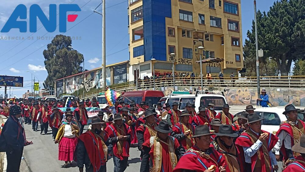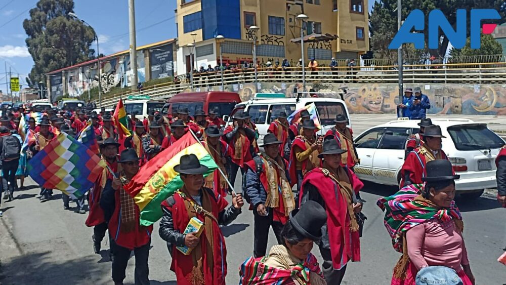🔵 #Ultimo | La marcha de los Ponchos Rojos desciende desde #ElAlto rumbo a la Casa Grande del Pueblo. Exigen al Gobierno cumplir su pliego petitorio. Una de las demandas es la construcción de un hospital de tercer nivel para su región. https://t.co/ylLBGbKBjs