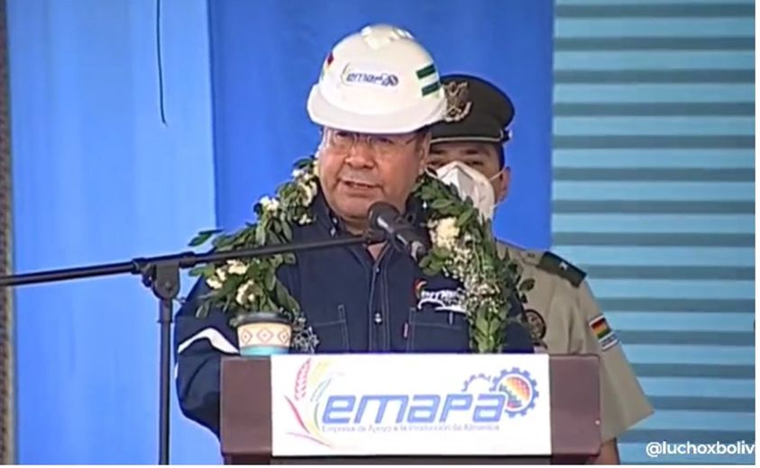 «Llegamos al municipio de San Julián, en Santa Cruz, para colocar la piedra fundamental de la Planta de Transformación de Subproductos de Soya», señaló a través de sus redes sociales el Presidente Luis Arce.