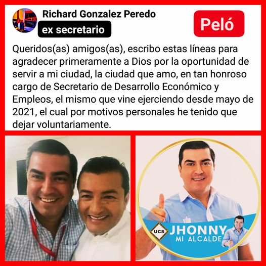 Agradezco a mi querido Alcalde y amigo personal Jhonny Fernández Saucedo por su deferencia al nombrarme el primer Secretario de dicha repartición municipal creada en su gestión y sobre todo por creer en los jóvenes profesionales. Gracias a la confianza del señor Alcalde depositada en mi persona pudimos llevar adelante una serie de Alianzas Público-Privadas en beneficio de todo nuestro pueblo en temas de salud durante la época más crítica del COVID-19, en la toma de decisiones oportunas de ir abriendo poco a poco la gran economía de Santa Cruz, cuando todos apostaban por el encierro y demás restricciones. Le reitero mi agradecimiento especial querido Alcalde Max Jhonny Fernández Saucedo, elegido democráticamente en las urnas, y que piensa siempre en el bienestar de los más desfavorecidos, en la unidad de nuestro país, y en la reactivación económica post pandemia en la cual hoy nos encontramos. Ahora seguiré apoyando a la gestión, pero de manera externa.