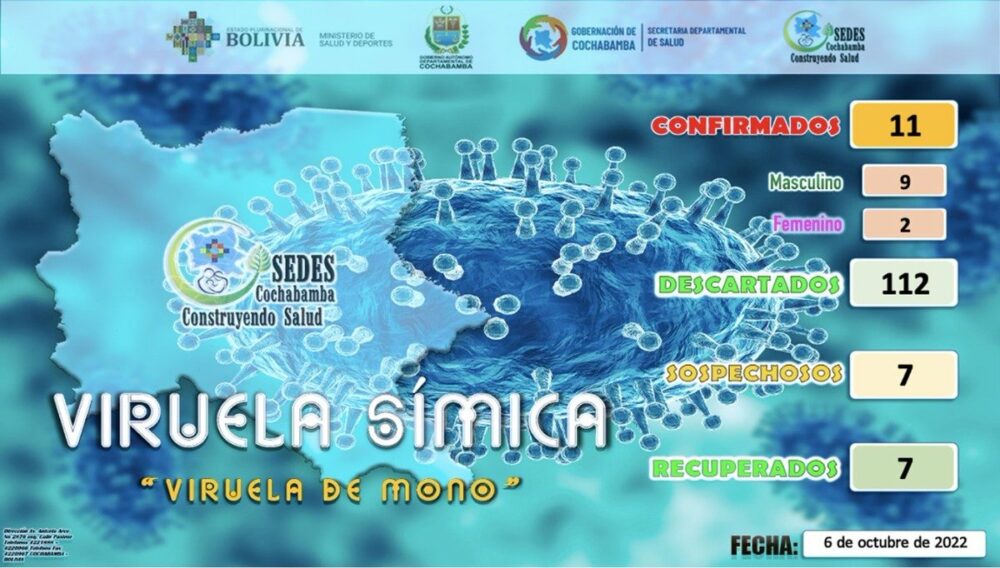 🔵 #ANF | #Salud El Sedes de #Cochabamba reporta que en el departamento se confirmaron 11 casos de viruela de mono, de los cuales siete se recuperaron. https://t.co/glBzZFUhSr