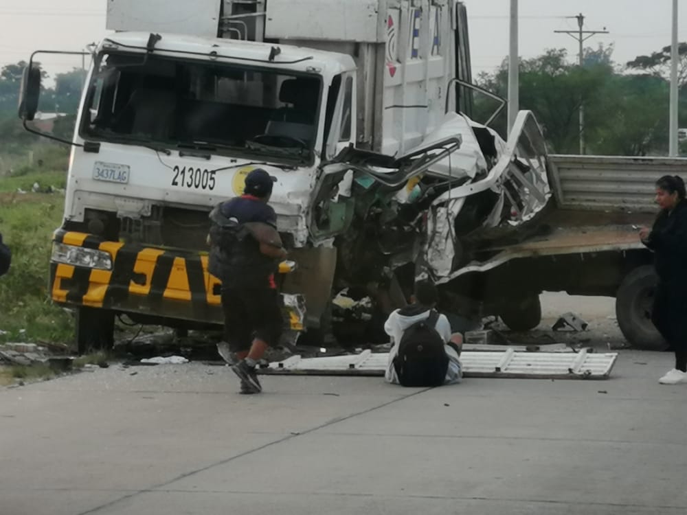 Una persona falleció y cuatro resultaron heridas tras el choque frontal entre un camión recolector de basura y una camioneta en la ruta hacia el nuevo vertedero, zona del Plan Tres Mil en Santa Cruz.