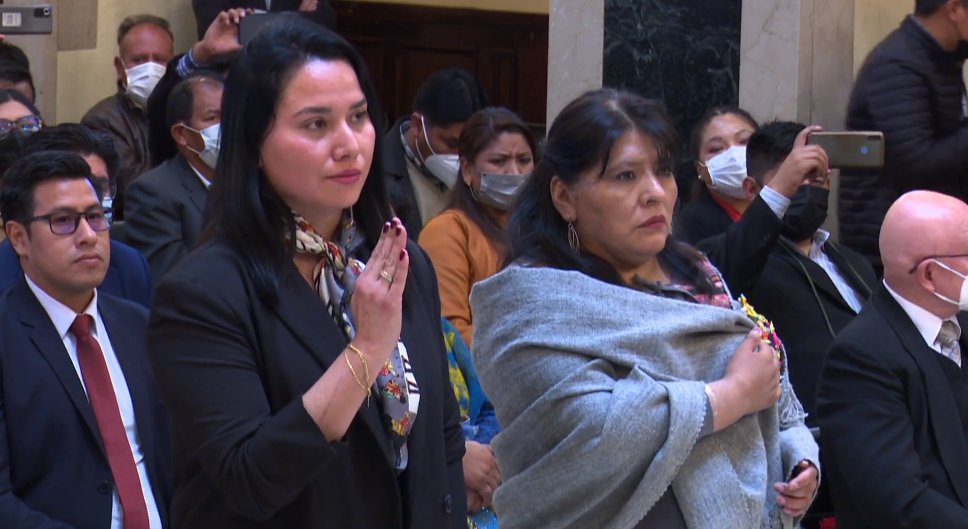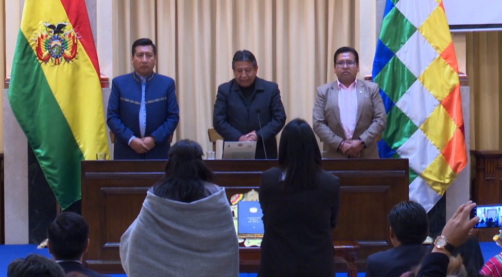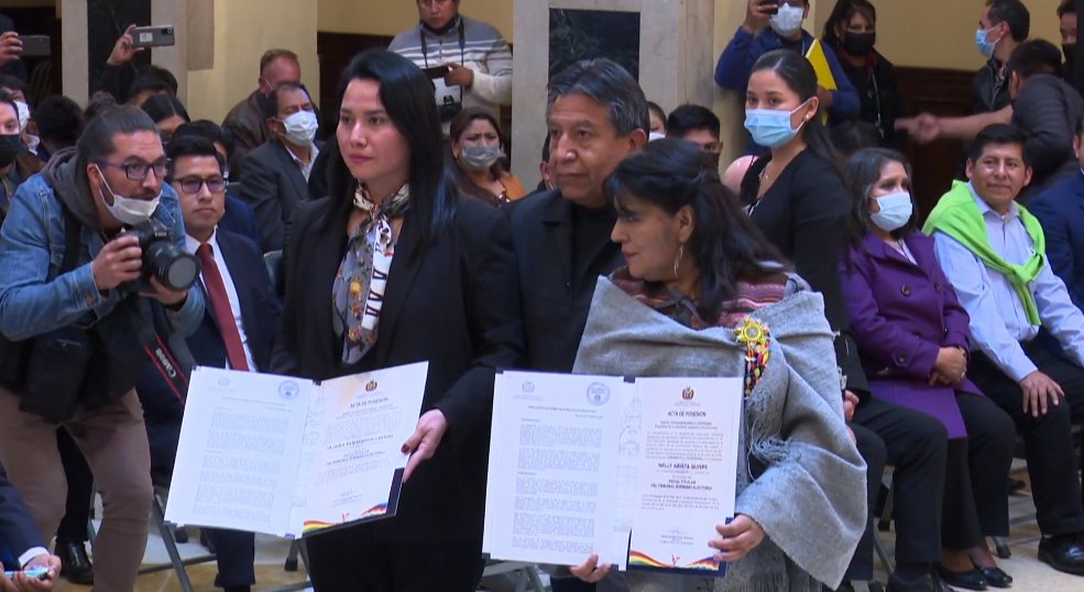 🔵 #Último | #Política El vicepresidente David Choquehuanca posesionó a Nelly Arista Quispe y a Yajaira San Martín Crespo como vocales titulares del Tribunal Supremo Electoral (TSE). https://t.co/xBdYuKmS9G