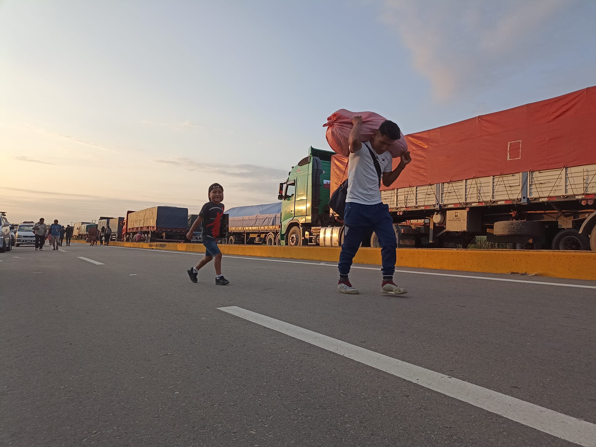 Bloqueo carretera principal Cochabamba Santa Cruz sector Puente Roto.