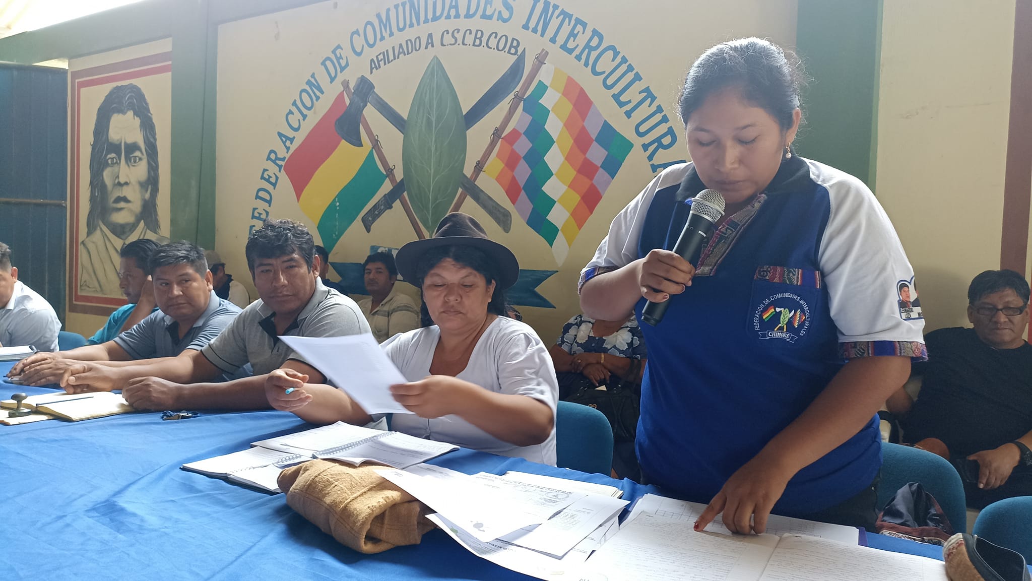 Ampliado de la Federación de Mujeres Interculturales de Chimore, se realiza a la cabeza de la ejecutiva Elena Almendras y su directorio de los 15 Centrales. Así mismo acompaña la Federación de varones, autoridades del municipio e instituciones.