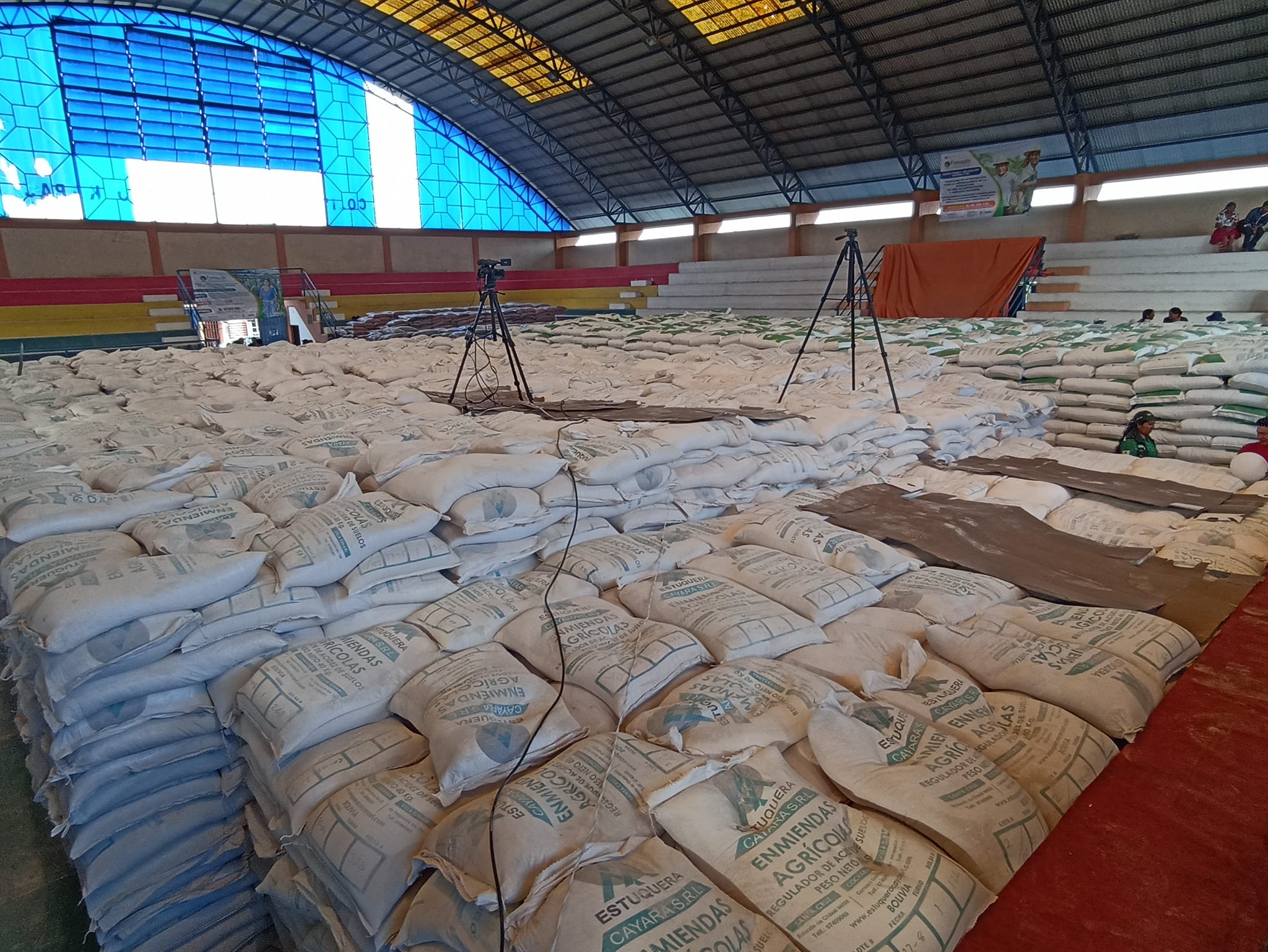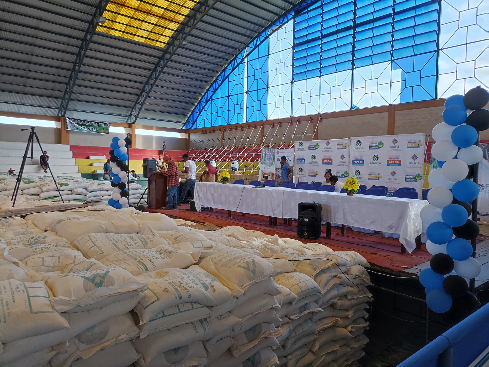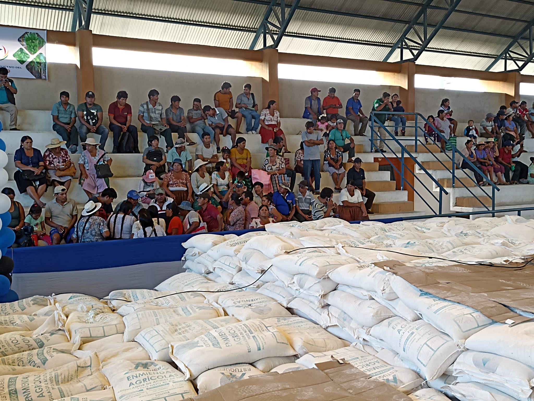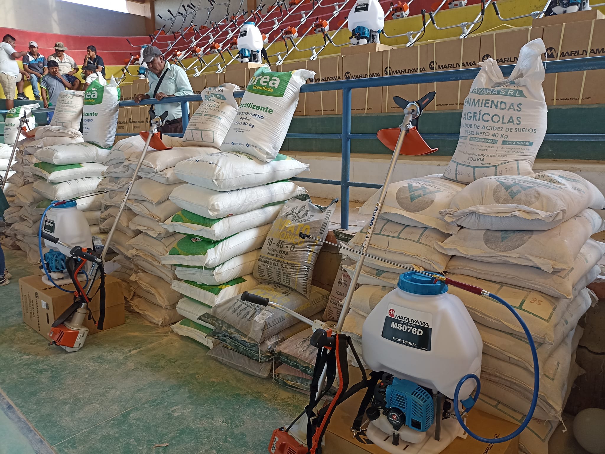 A minutos para el acto de entrega de paquetes tecnológicos e insumos agrícolas para productores de banano, plátano y piña en el distrito V Manco kapac del Municipio de Entre Ríos.