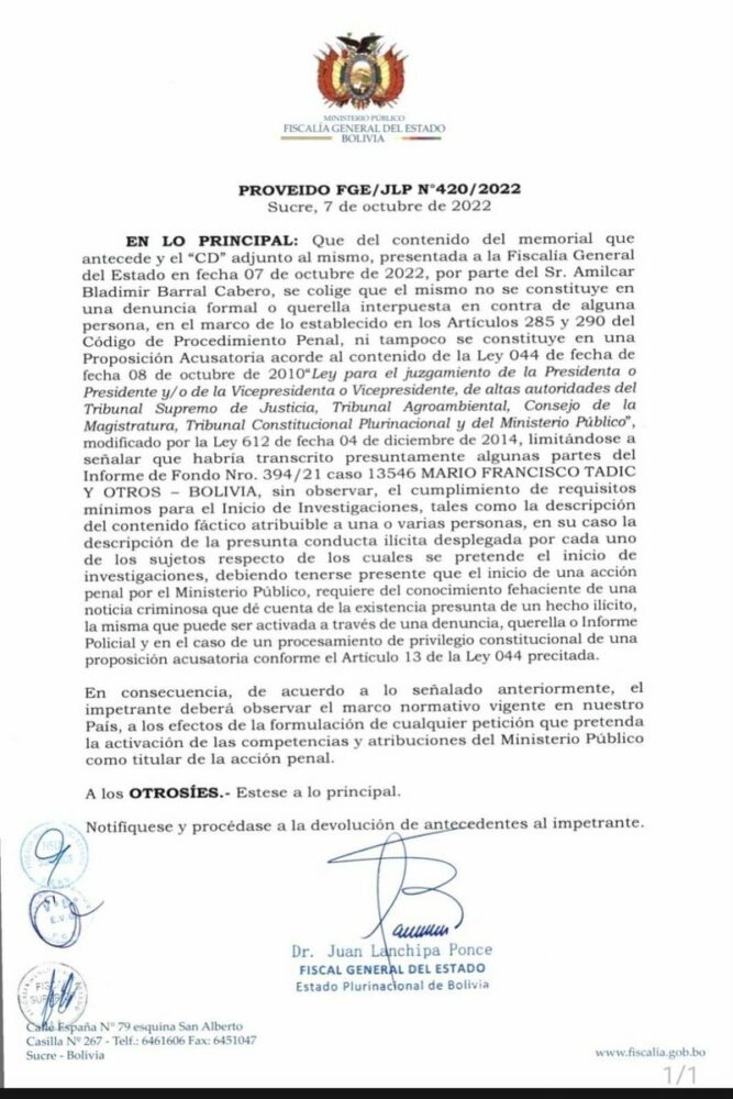 🔵 #Último | #Política La Fiscalía General del Estado desestima iniciar una investigación contra el expresidente Evo Morales por las recomendaciones del informe de la CIDH sobre el caso Terrorismo.