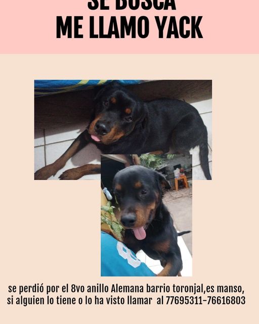 Buscan a YACK, una mascota que se extravió el 29 de septiembre por el 8vo anillo entre Alemania y 2 de agosto. Llevaba un collar plateado con figuras de huesitos. Ofrecen buena recompensa para quien brinde mayor información sobre el paradero del perrito.