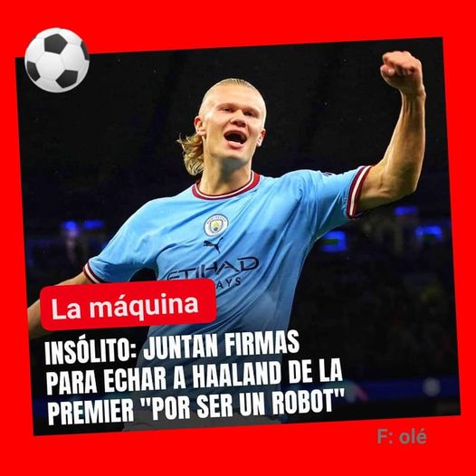 🤖 En la página web Change.org presentaron una petición para que el gobierno británico prohíba que Haaland continúe jugando en la Premier. ¿Por qué? Acusan que el atacante de 22 años ¡es un robot! 🤖