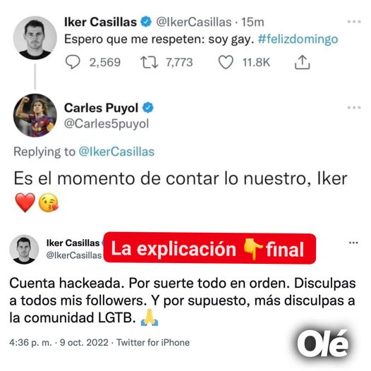 💬 “Espero que me respeten, soy gay”, el tuit de la cuenta de Iker Casillas que fue borrado para luego revelar que había sido hackeado