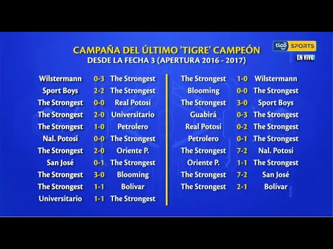 Campaña del ultimo ‘Tigre’ Campeón. Desde la Fecha 3 (Apertura 2016 – 21017).