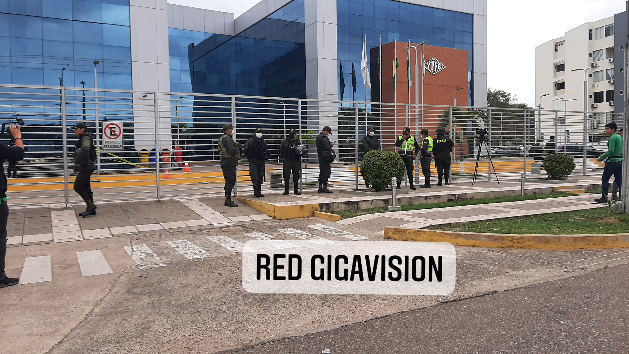 Fuerte resguardo policial en instalaciones de YPFB, se prevé que a las 10:00 am se realice la reunión del ministerio de planificación, INE y autoridades de Santa Cruz y otros departamentos para iniciar mesas técnicas por el censo.