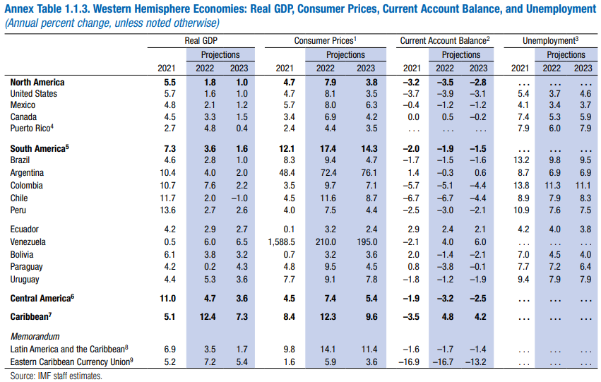 Chile es el único país de todos los observados en esta tabla que va a entrar en recesión en 2023: -1%.