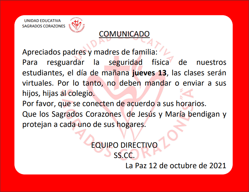 | La Unidad Educativa Sagrados Corazones de la ciudad de #LaPaz informa qu…