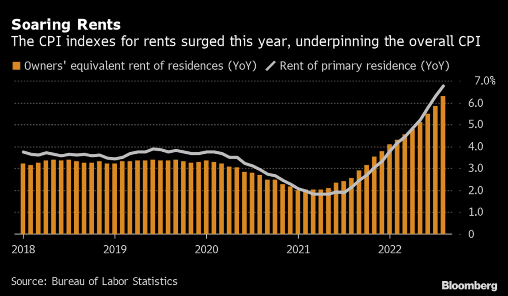 Se espera que la inflación en EEUU (headline CPI) esté cediendo terreno, pero la inflación subyacente (que excluye energía y alimentos) podría volver a máximos de 40 años impulsada por alquileres. Mañana los datos oficiales. https://t.co/VkE4lQRIKp