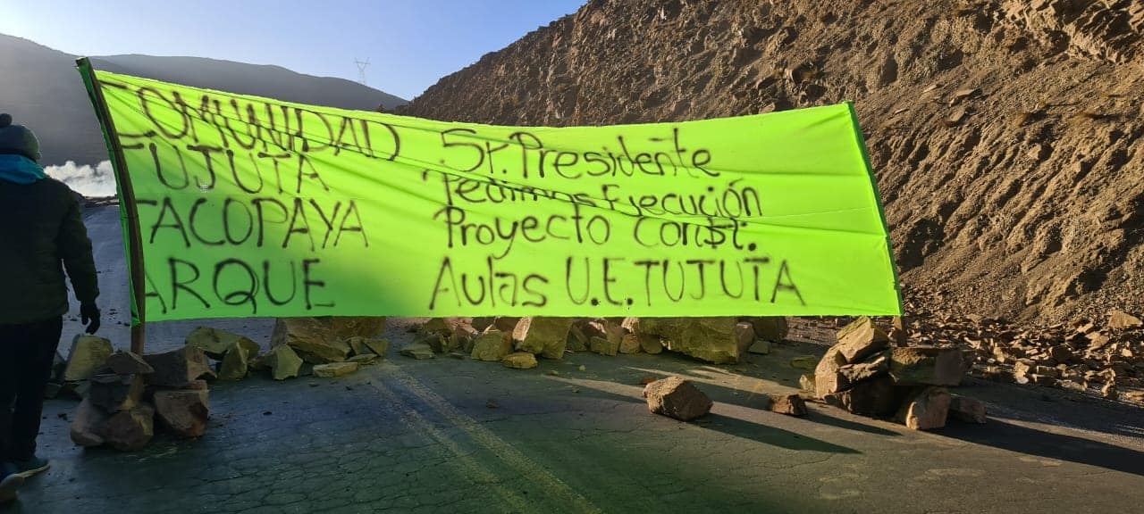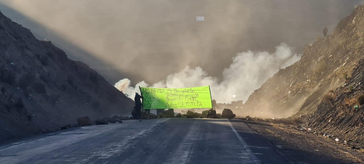 La unidad operativa de tránsito reporta un bloqueo hacia el occidente Km 115 carretera Cochabamba- Oruro comunarios de la localidad de Tujuta demandan la redacción de la unidad educativa de Tujuta a las autoridades municipales.