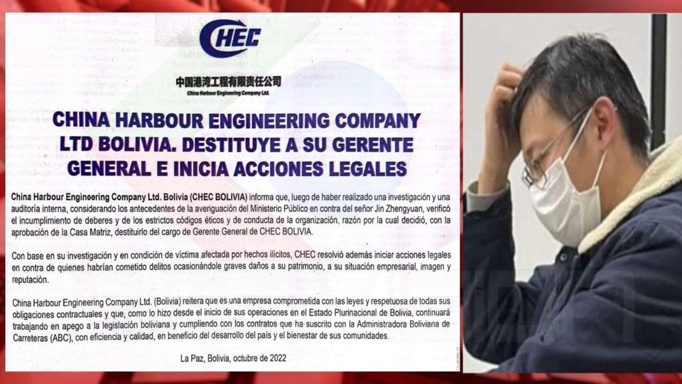 CHINA CHEC DESTITUYE A SU GERENTE EN BOLIVIA