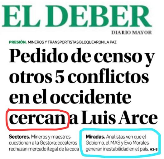 Y dice que analistas ven a tres responsables de generar inestabilidad en Bolivia: