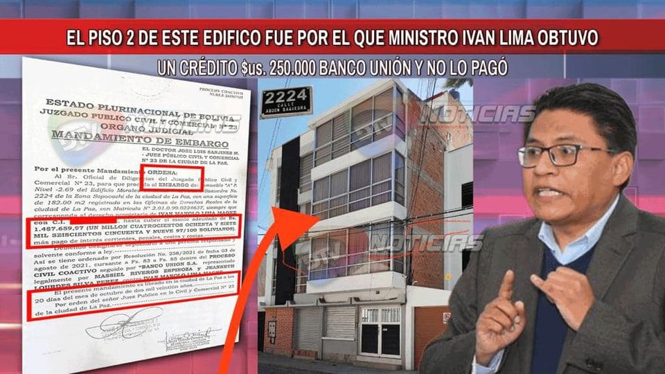 Llegamos en las últimas horas a la calle Abdon Saavedra Nro. 2224 Edificio Morales Centellas, zona de Sopocachi donde se encuentra un inmueble de 180 metros que fue embargada a Iván Lima por no haber pagado un crédito que sacó del Banco Unión por Bs. 1.700.000 de los cuales no pago Bs. 1.487.659.-