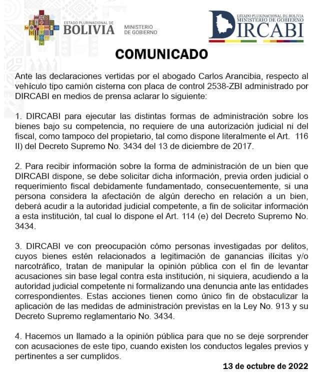 🔵 #ANF | #Política Dircabi aclara que no necesita autorización para ejecutar la administración de bienes incautados. La aclaración surge luego que el abogado Carlos Arancibia denunciara que un vehículo secuestrado no se encontraba en depósito de Dircabi. https://t.co/mpbqamIo1l