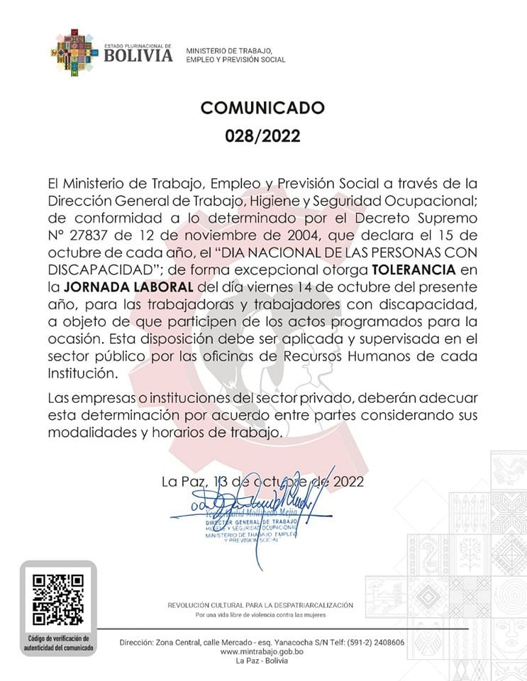 🔵 #ANF | #Sociedad El Ministerio de Trabajo dispone tolerancia laboral este viernes para las y los trabajadores con discapacidad, en conmemoración al "Día Nacional de las Personas con Discapacidad". pic.twitter.com/Ehw7MeBTVF