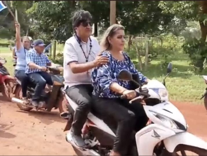 Evo Morales publicó en sus redes sociales videos en el que se lo ve en una moto conducida por la dirigente del MAS, Carmen Delicia Zambrana y no por Carmen Eris Lima Lobo.