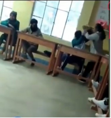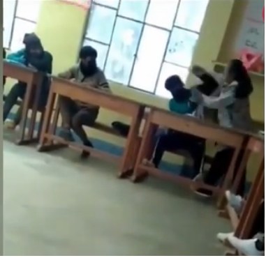 En las imágenes se ve cómo el estudiante se cubre e intenta detener a la maestra. La maestra furiosa cacheteó, jaloneó y dio puñetazos a un alumno en plena clase.
