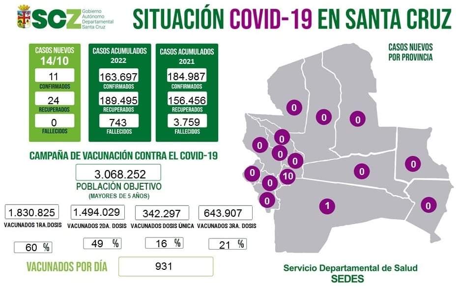 🔵 #ANF | #Salud El Sedes de #SantaCruz registra 11 nuevos casos de #COVID19 y 24 recuperados. pic.twitter.com/G7eupr1Koa