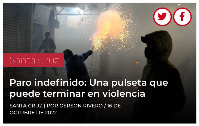 Hay temor por posible violencia en el paro indefinidoCategorías NoticiasEtiquetas , Facebook, Pepe Pomacusi Periodista 16/10/2022 Fuente: Pepe Pomacusi Periodista