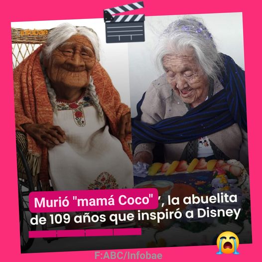 🎬La mujer que inspiró al personaje de Mamá Coco en la celebrada película ‘Coco’ , producida por los estudios Pixar y ganadora del Oscar en 2017 a mejor cinta de animación.