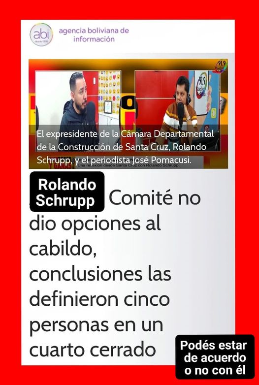 Rolando Schrupp advirtió que el paro indefinido que se iniciaría el 22 de octubre es motivado por “políticos con intereses mezquinos”. 🔥 Apuntando con todo contra Luis Fernando Camacho.