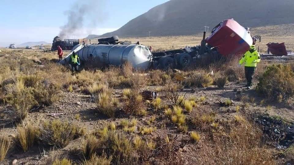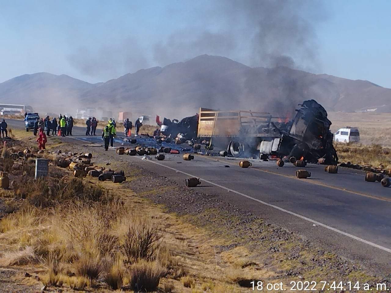 Tráiler chocó con camión que trasladaba garrafas de gas